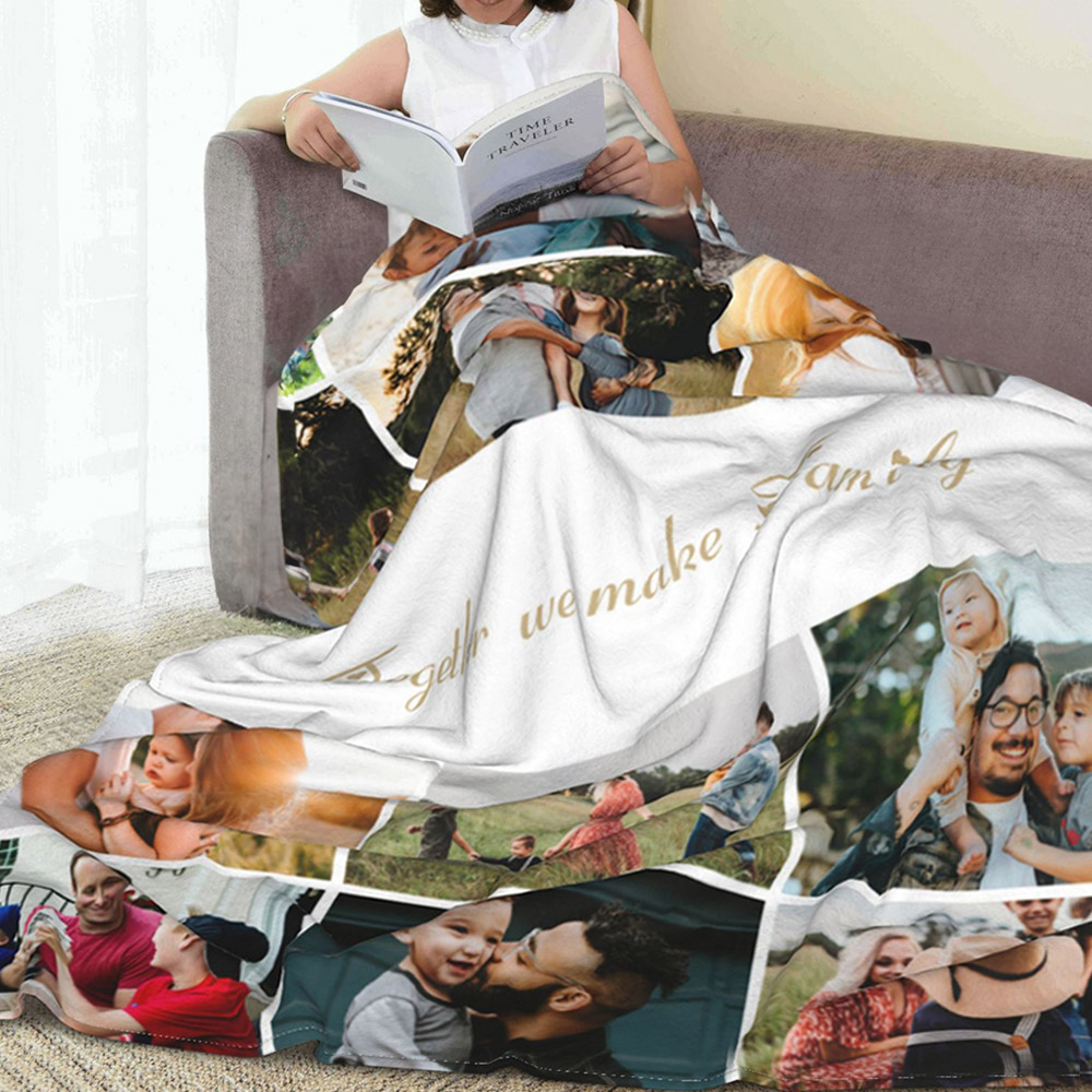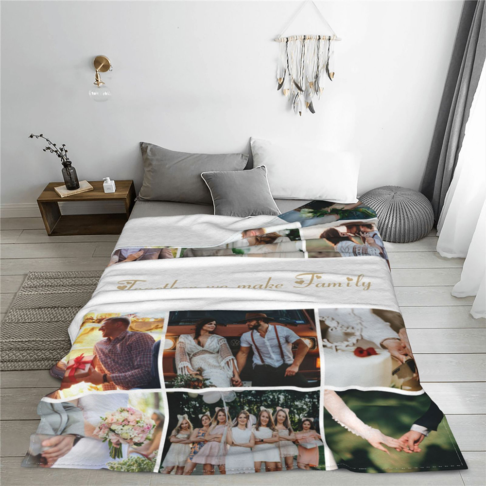 Personalized 12 Photos Collage Super Soft Blanket with Text Christmas Thanksgiving Day Gift for Family Friend