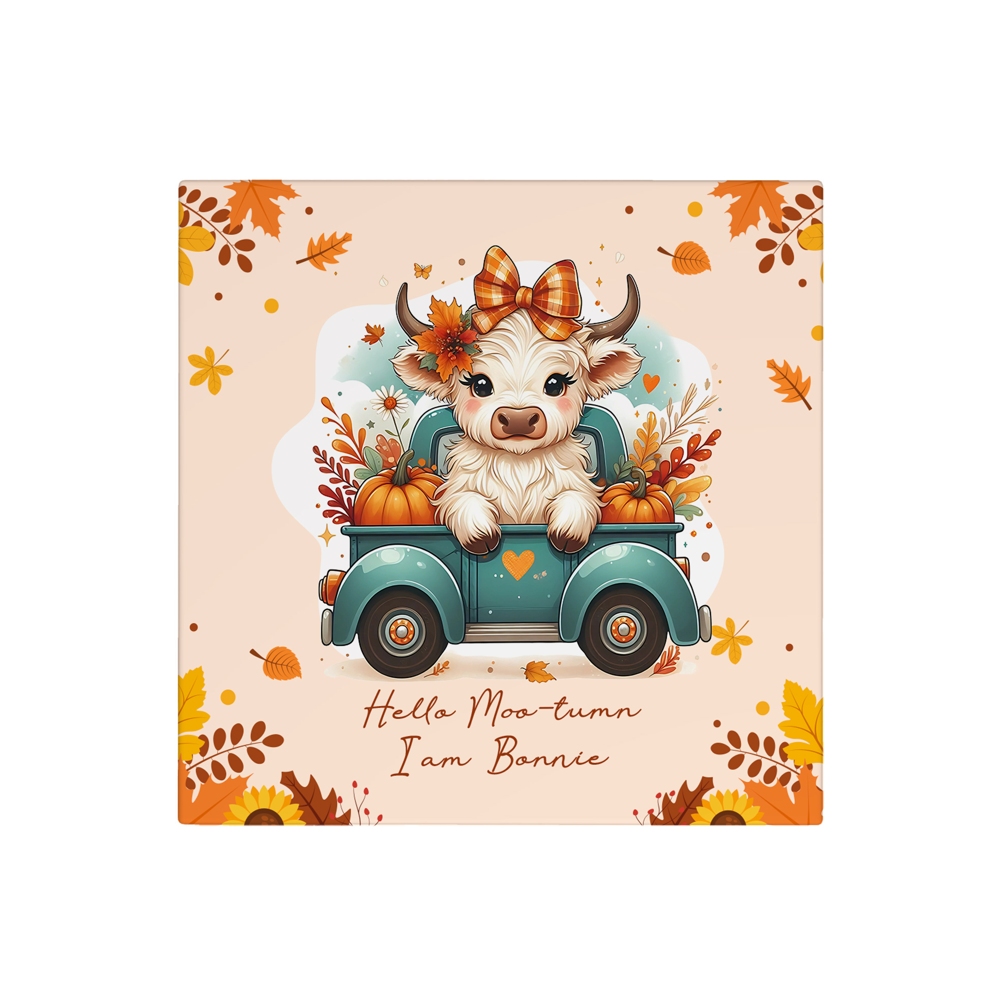 Personalised Autumn Highland Cow Pumpkins Mug, Thanksgiving Coffee Cup with Coaster and Name, Thanksgiving Gift for Highland Cow Lover