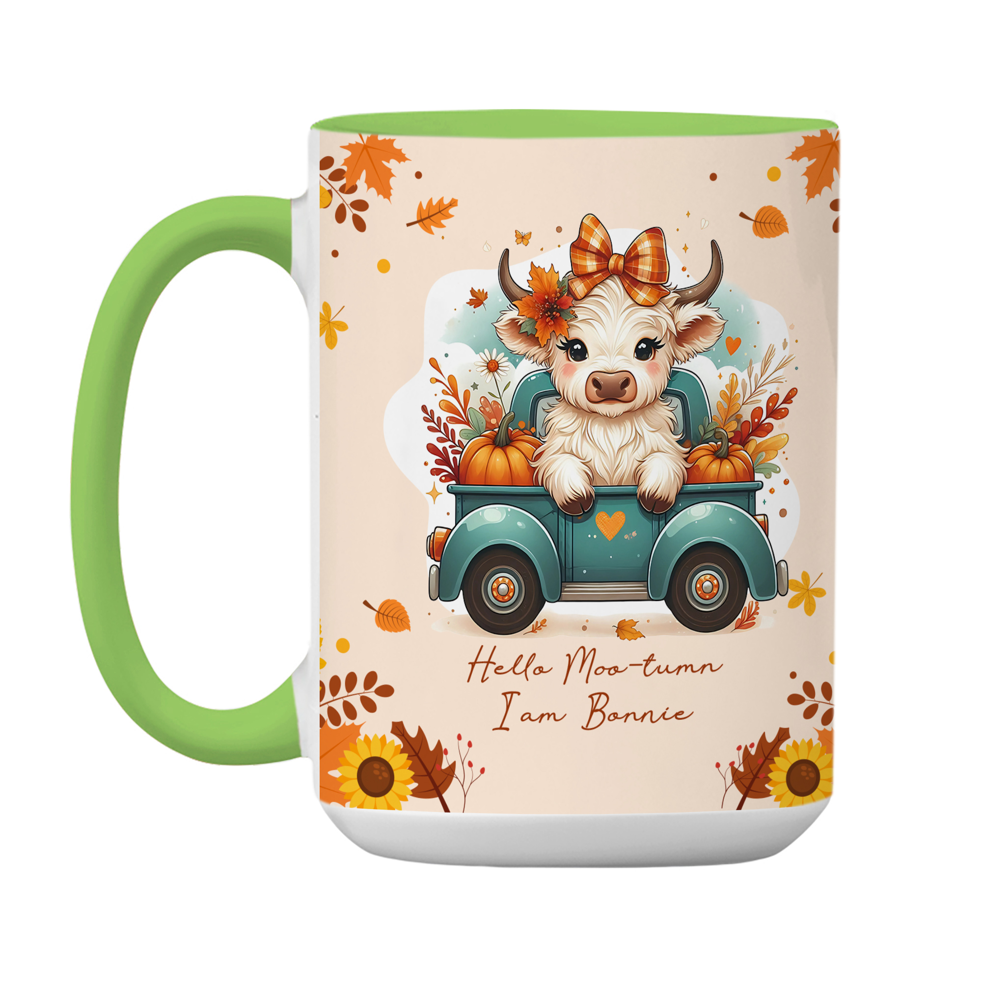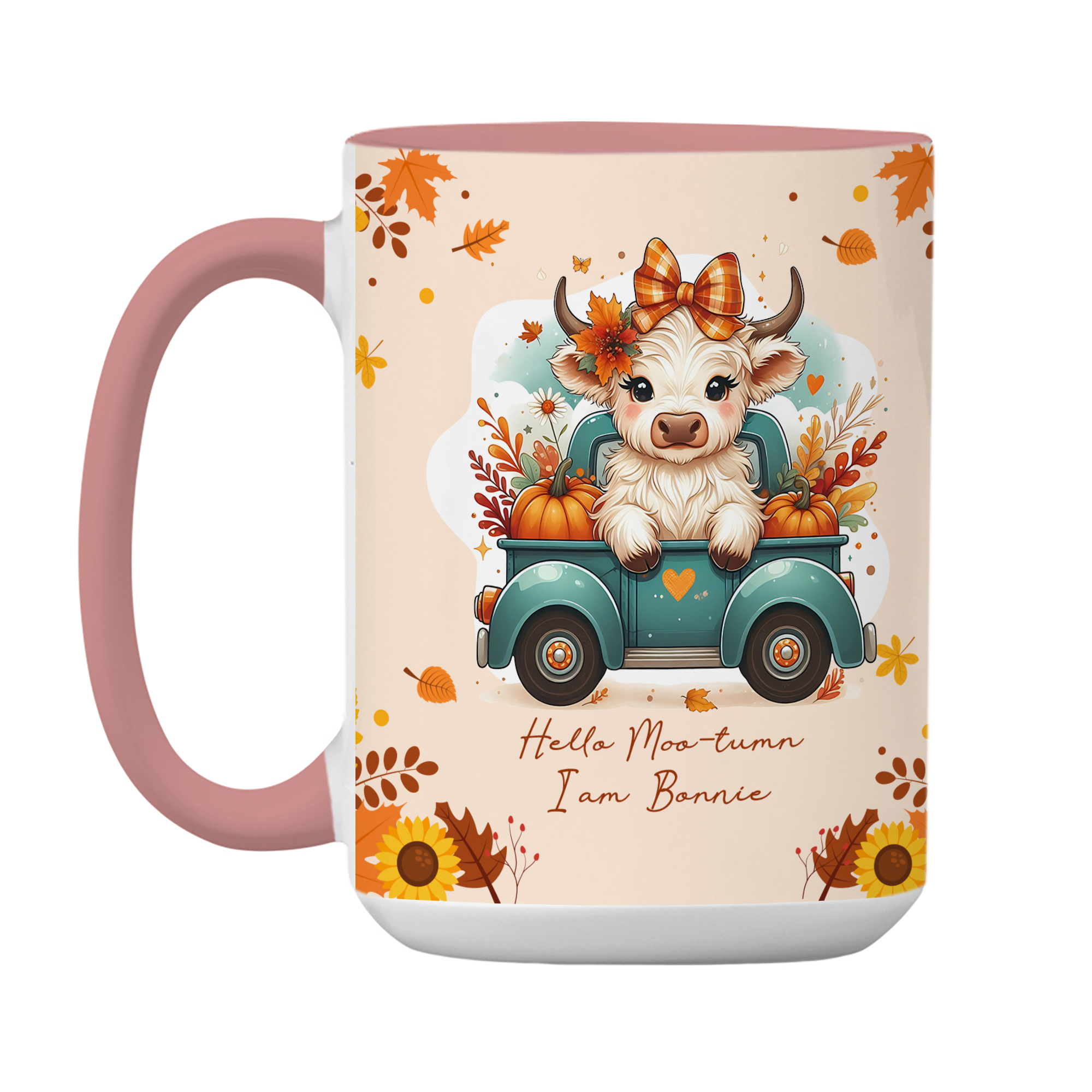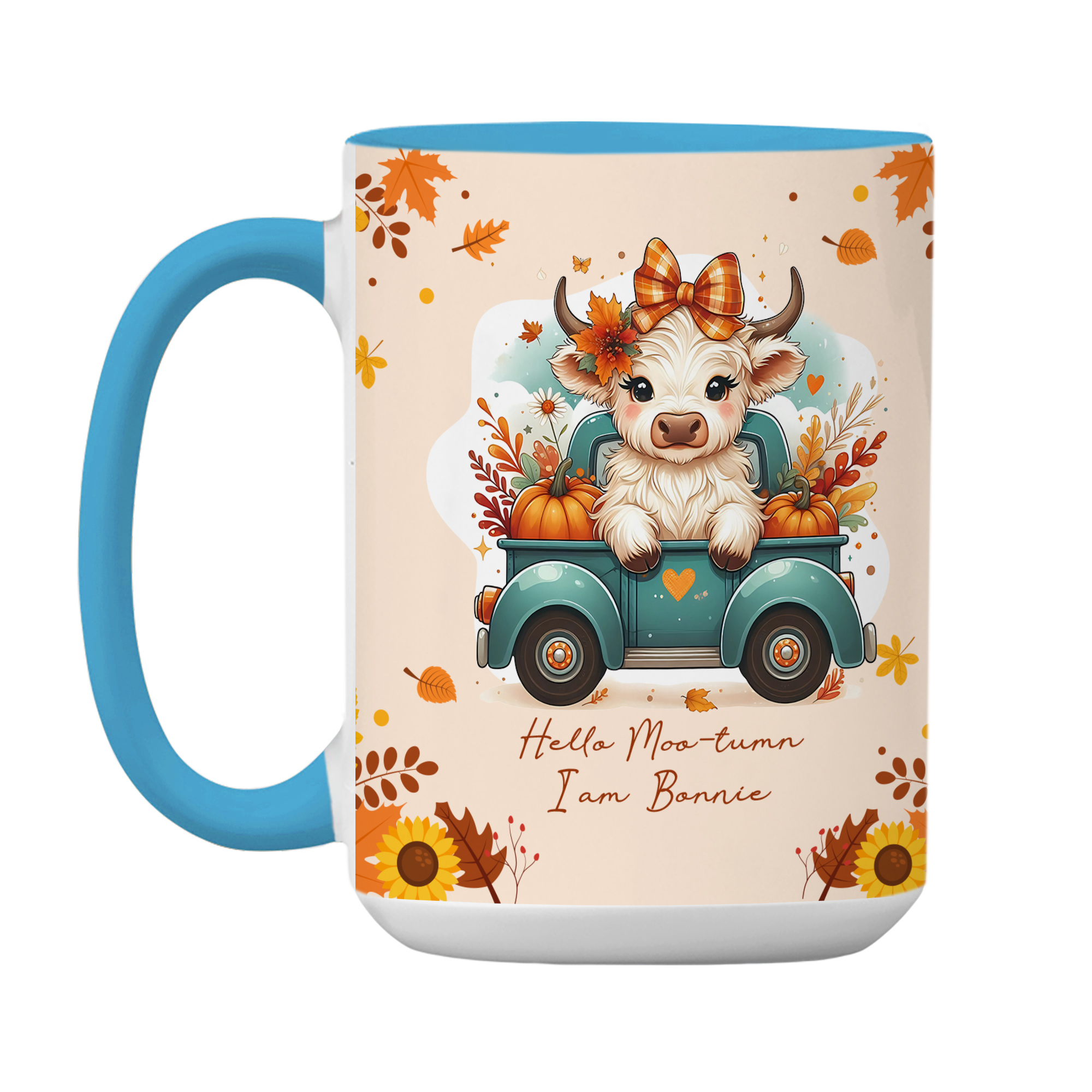 The cute Highland Cattle Autumn Pumpkin Mug can be customized with your name and your favorite Highland Cattle pattern. There are multiple mug colors to choose from. It is a practical gift for Highland Cattle lovers, a Thanksgiving gift, or an autumn gift.