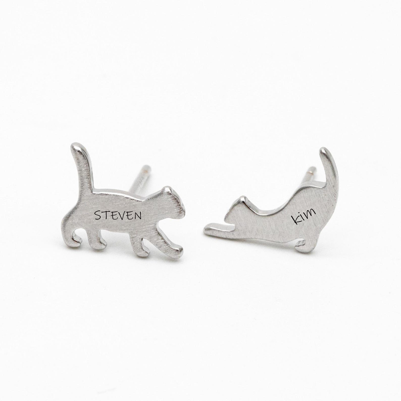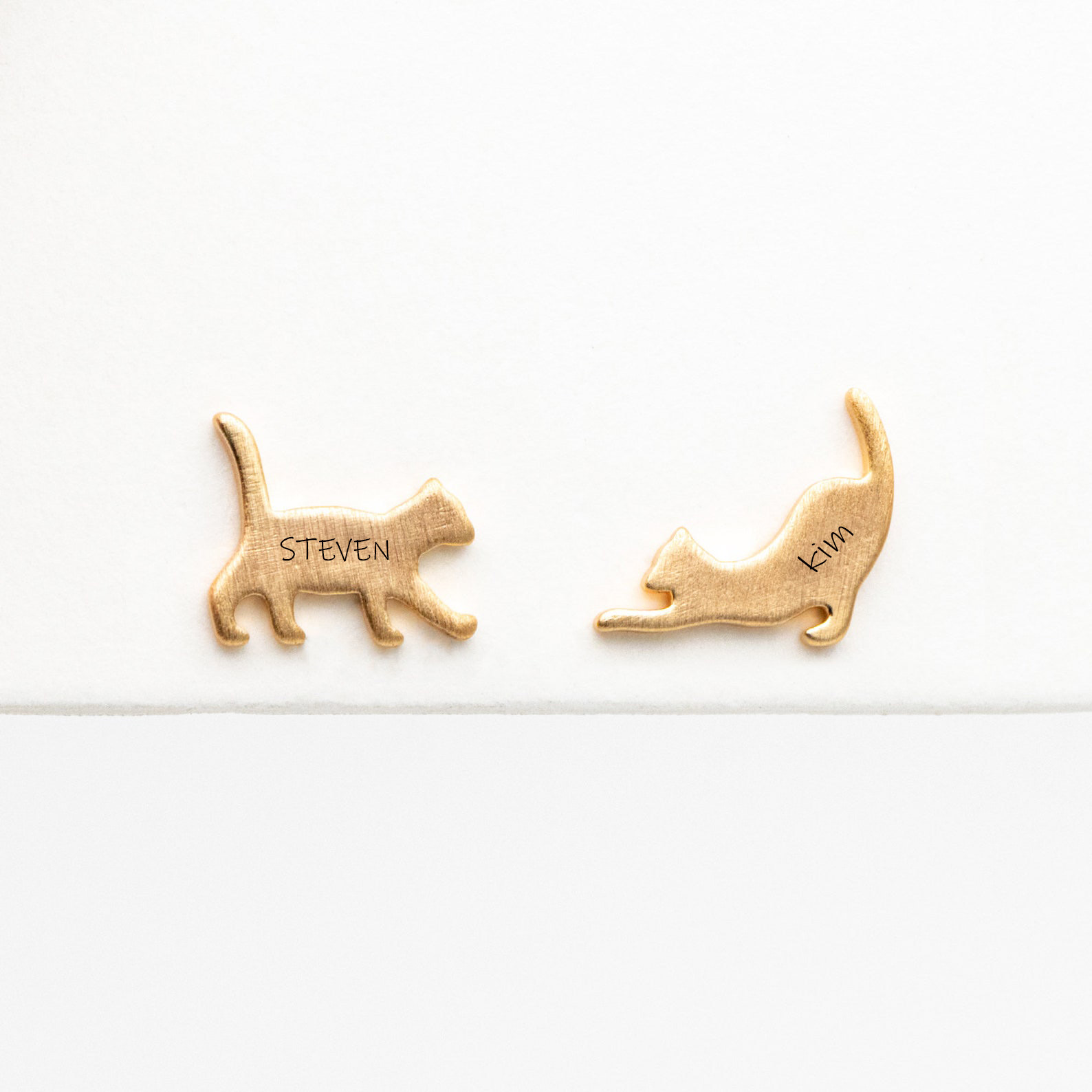 Customization - Personalize the earrings with two names beautifully engraved on each piece. This thoughtful detail makes them a one-of-a-kind accessory, celebrating the special bond between cat owners and their furry friends.