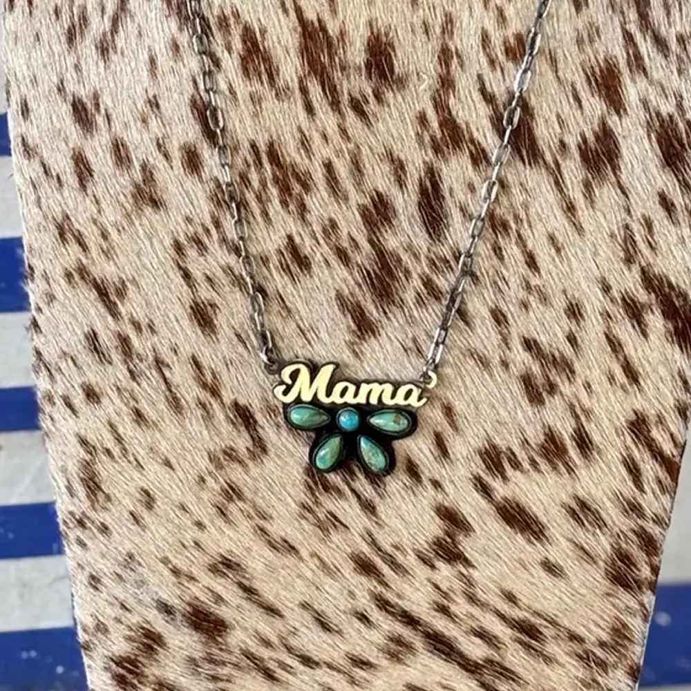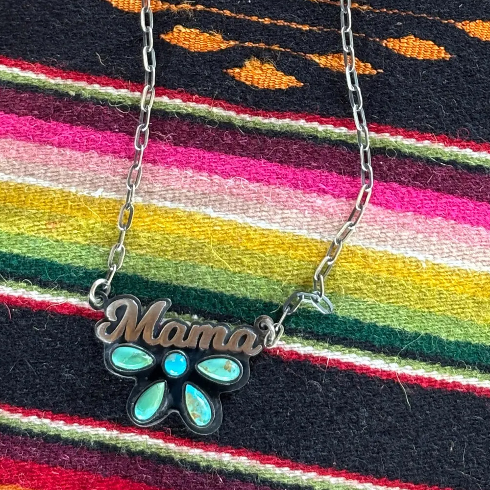 Personalized Turquoise Cluster Pendant Necklace with Name, Sterling Silver 925 Western Style Dainty Necklace, Anniversary Gift for Cowgirl/Mom/Her